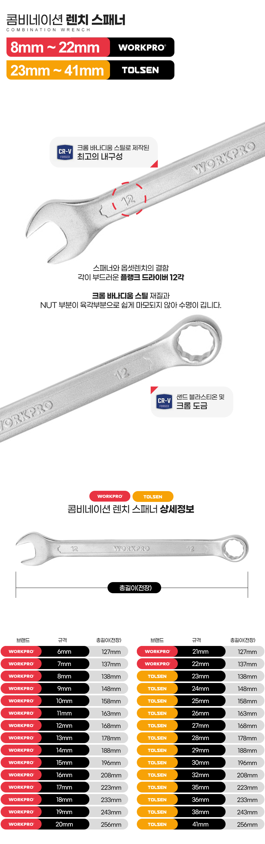 콤비네이션 렌치 스패너 6mm ~ 41mm