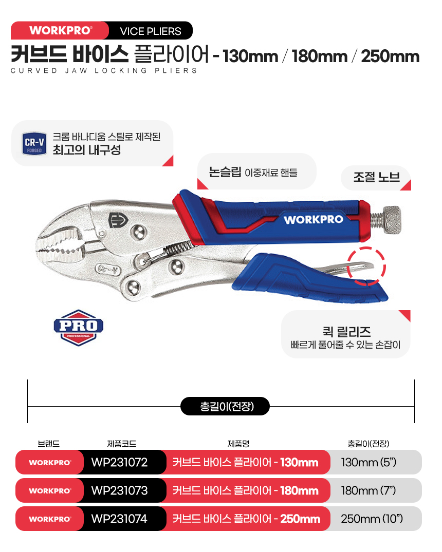 커브드 바이스 플라이어 130mm 180mm 250mm