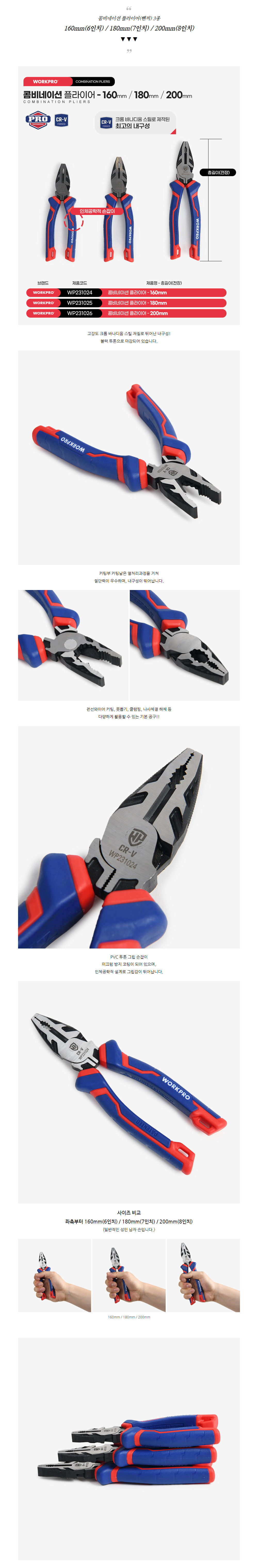 콤비네이션 뺀치 플라이어 160mm 180mm 200mm