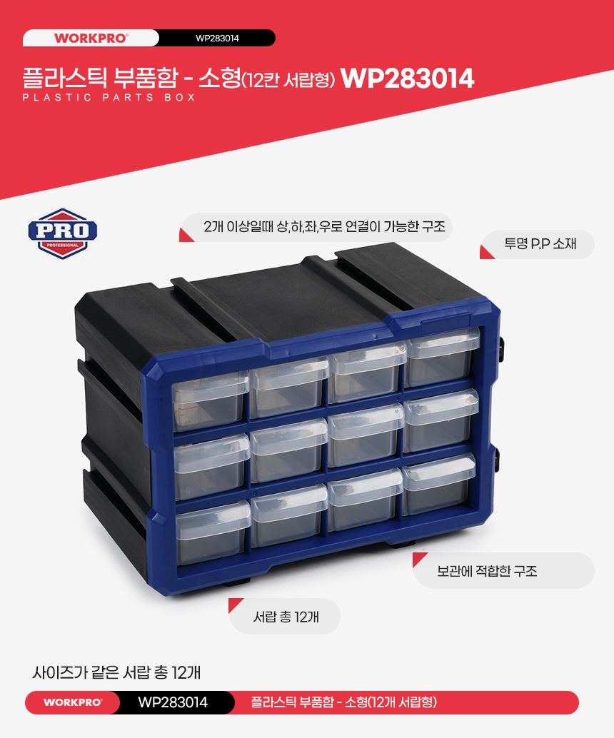 플라스틱 서랍형 부품 수납함 소형(서랍12칸) WP283014
