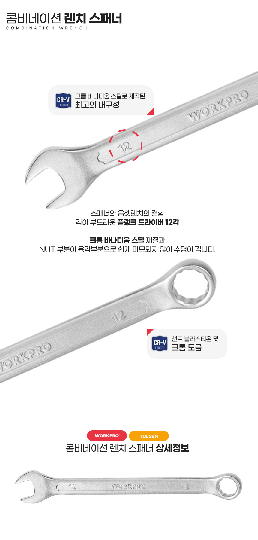 콤비네이션 단구 렌치 스패너 6mm ~ 22mm 워크프로