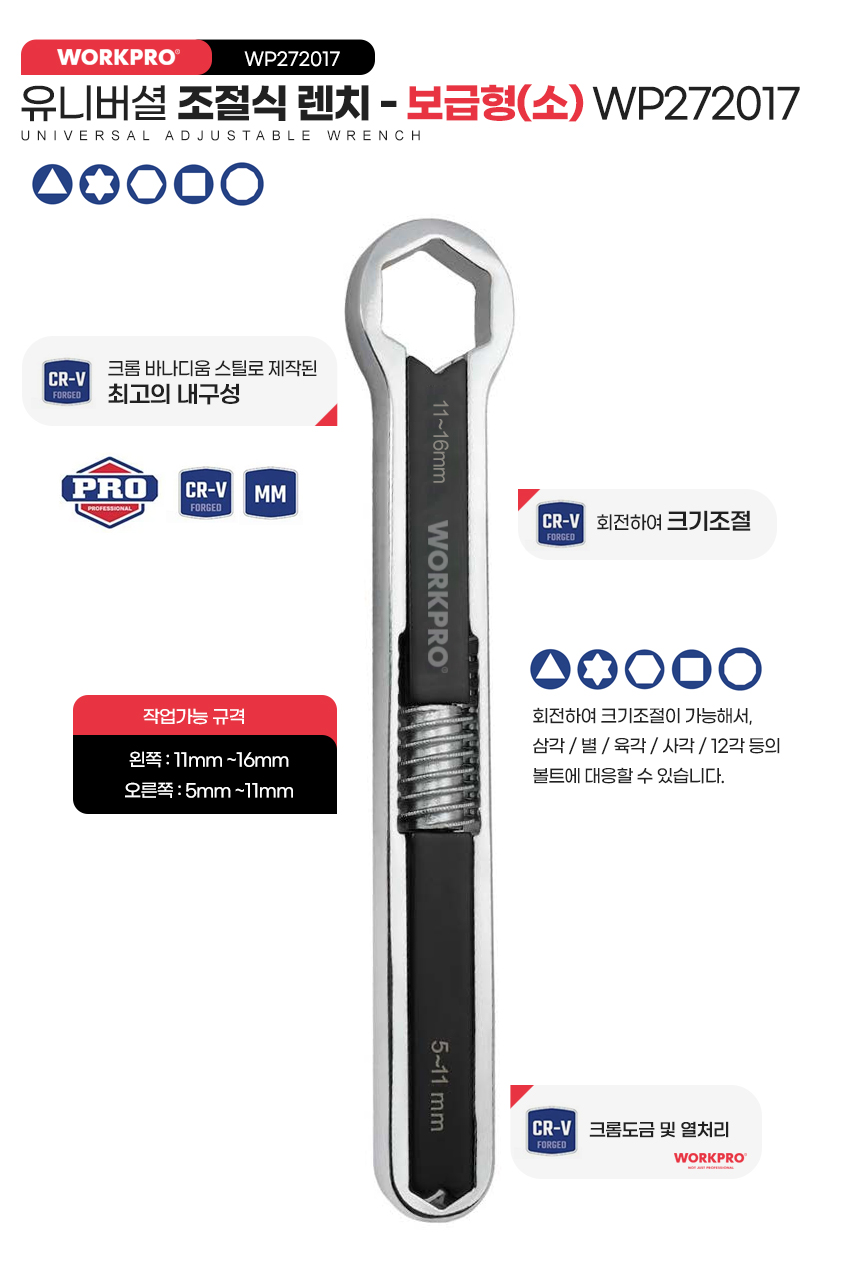 일반형 유니버셜 렌치 대/소 사이즈 5~27mm 워크프로