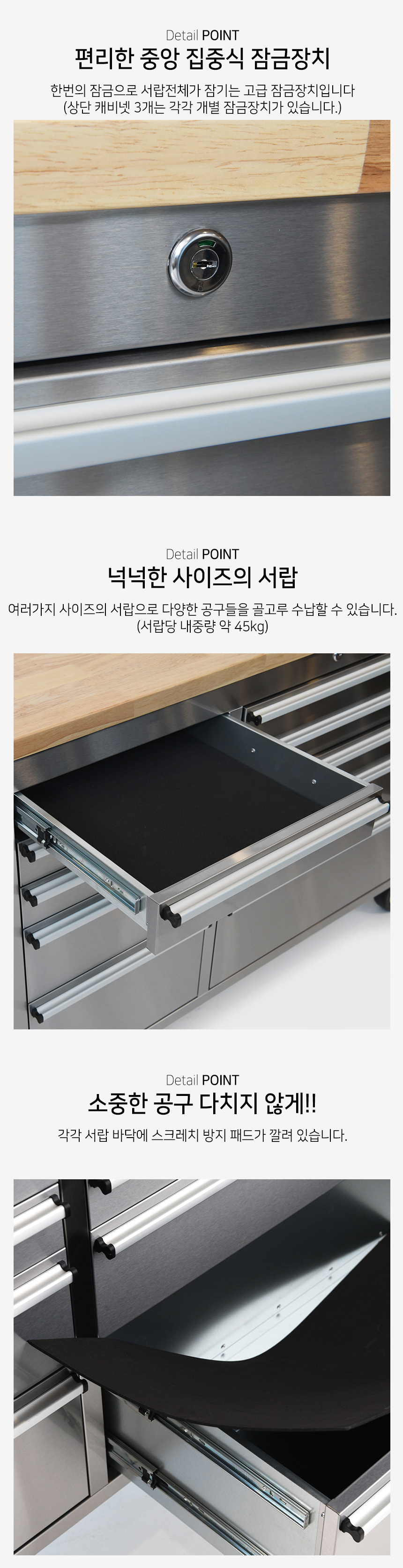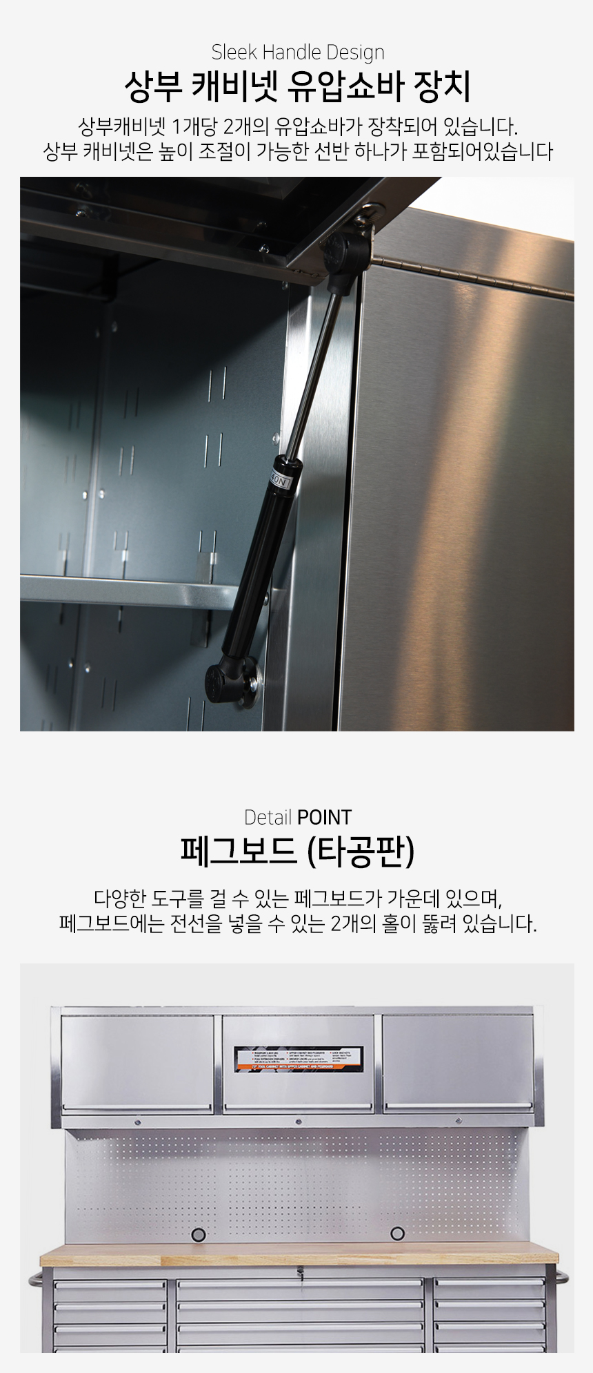 상부 3개의 캐비넷(유압쇼바, 선반높이조절)