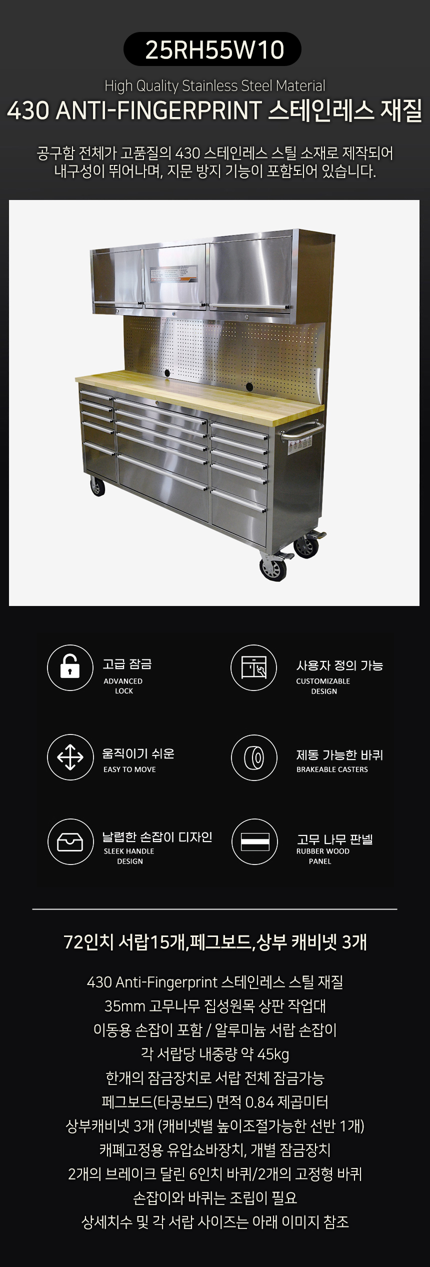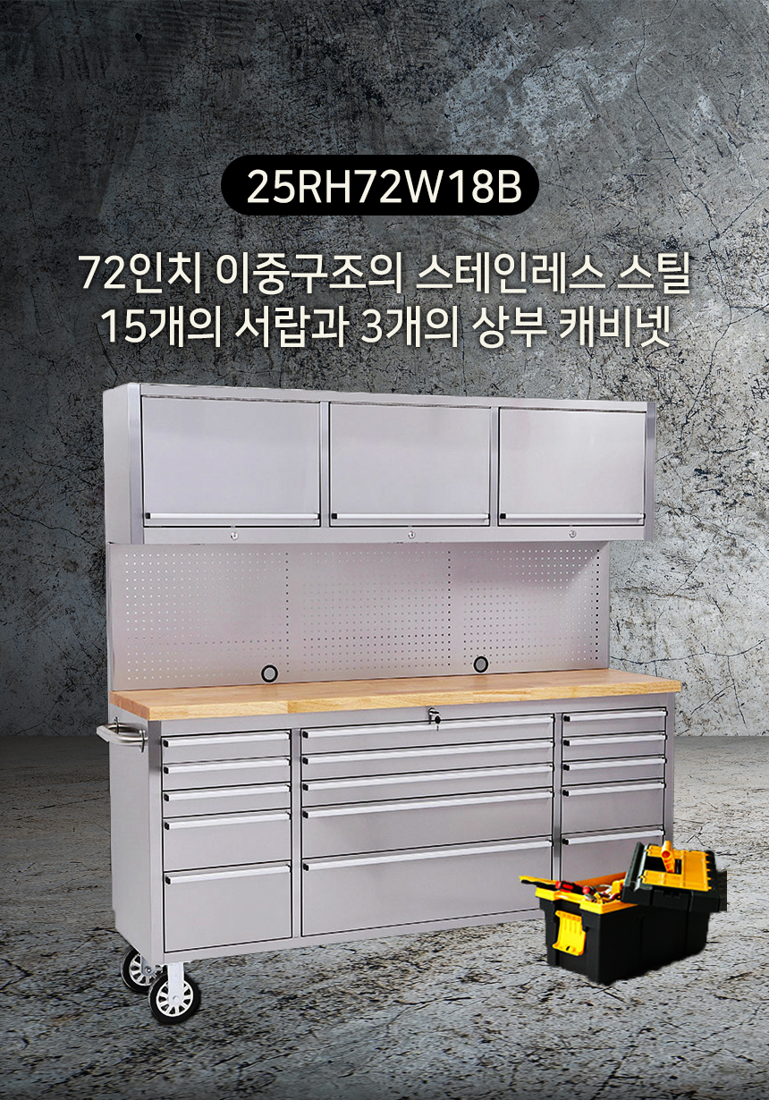 72인치 15개의 서랍과 3개의 상부 캐비넷