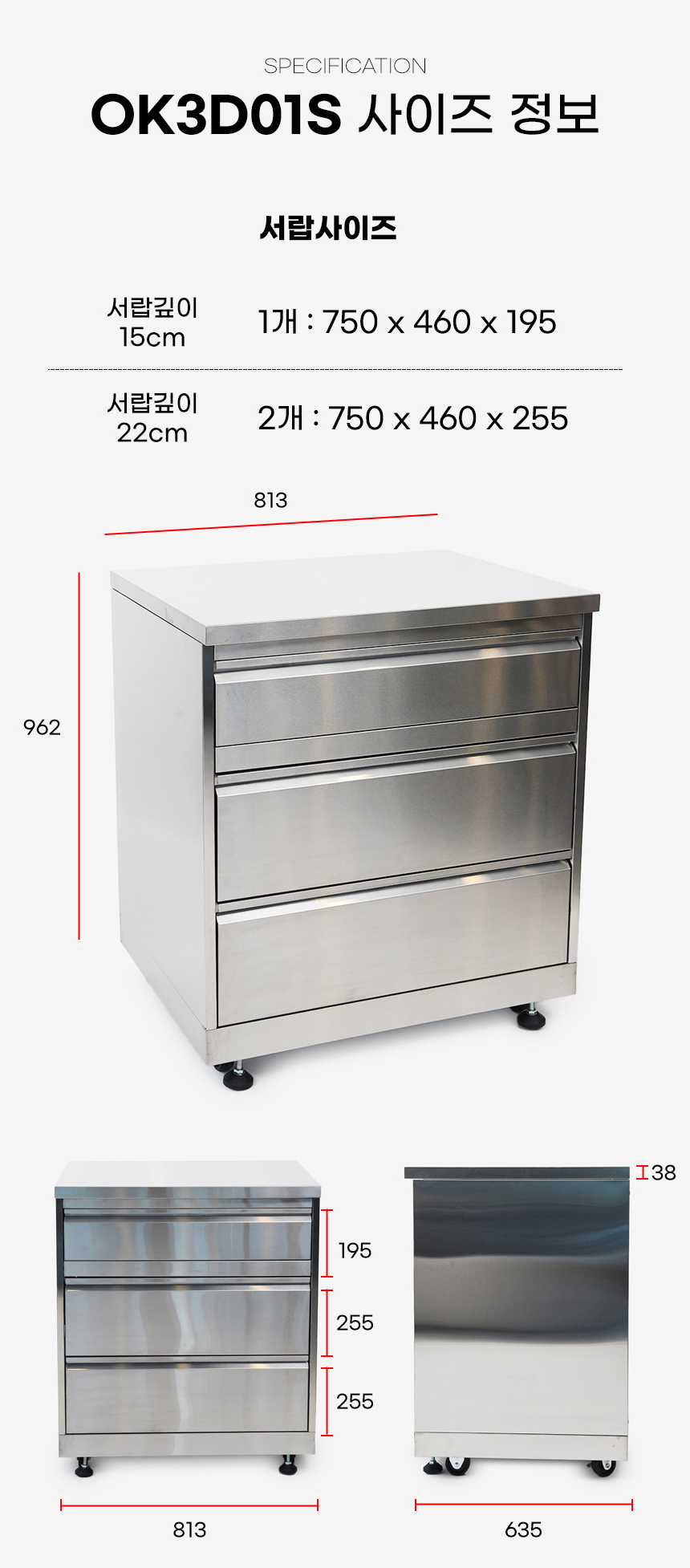 대형 서랍 3개 813x635x962mm